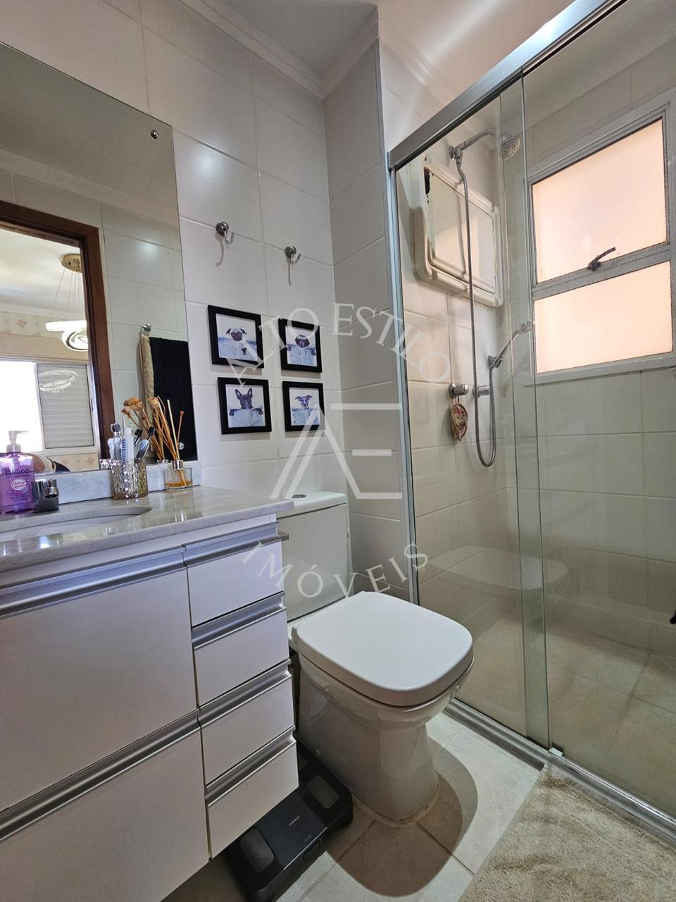 Banheiro social armários planejados, Box e espelho