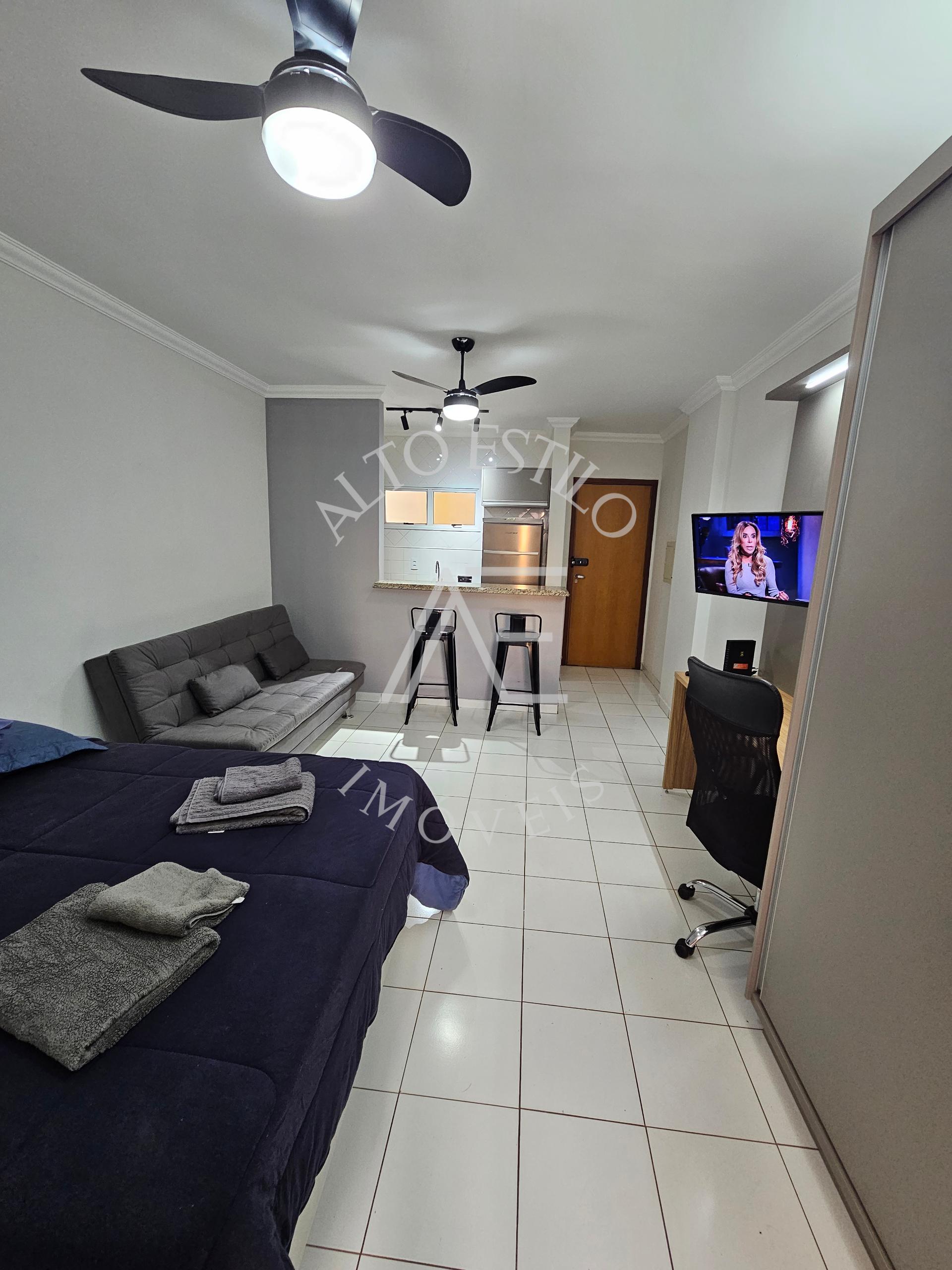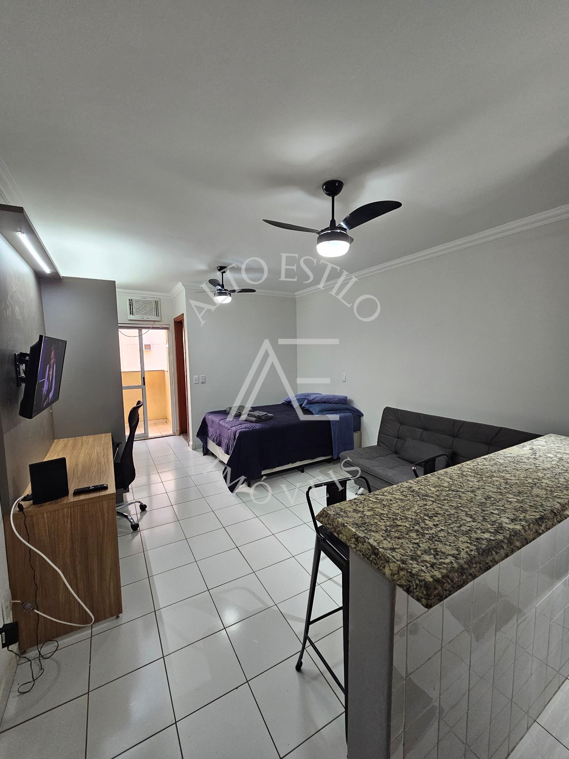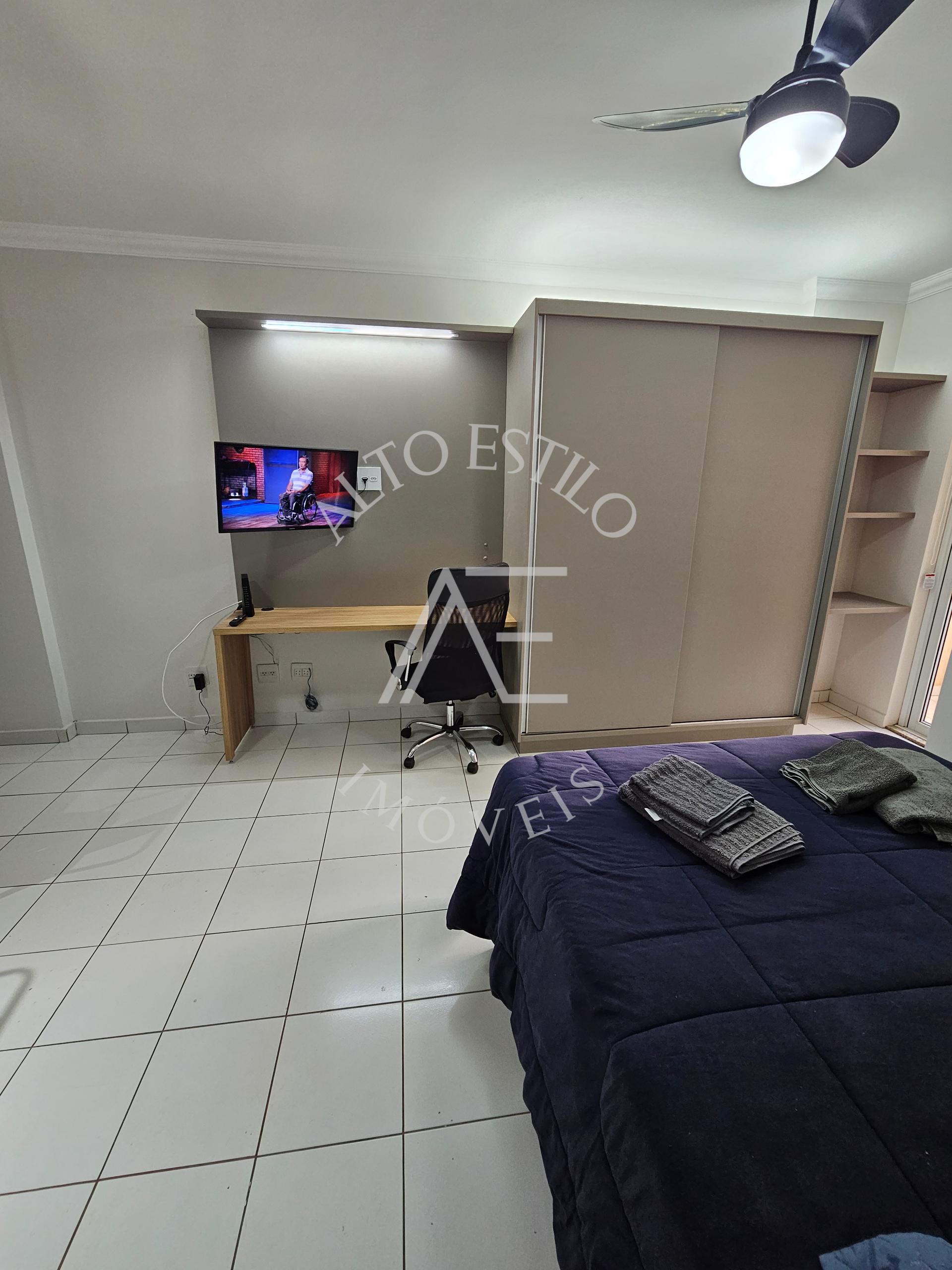 Mobiliada com TV, ar-condicionado, fogão, micro-ondas, cama e sofá