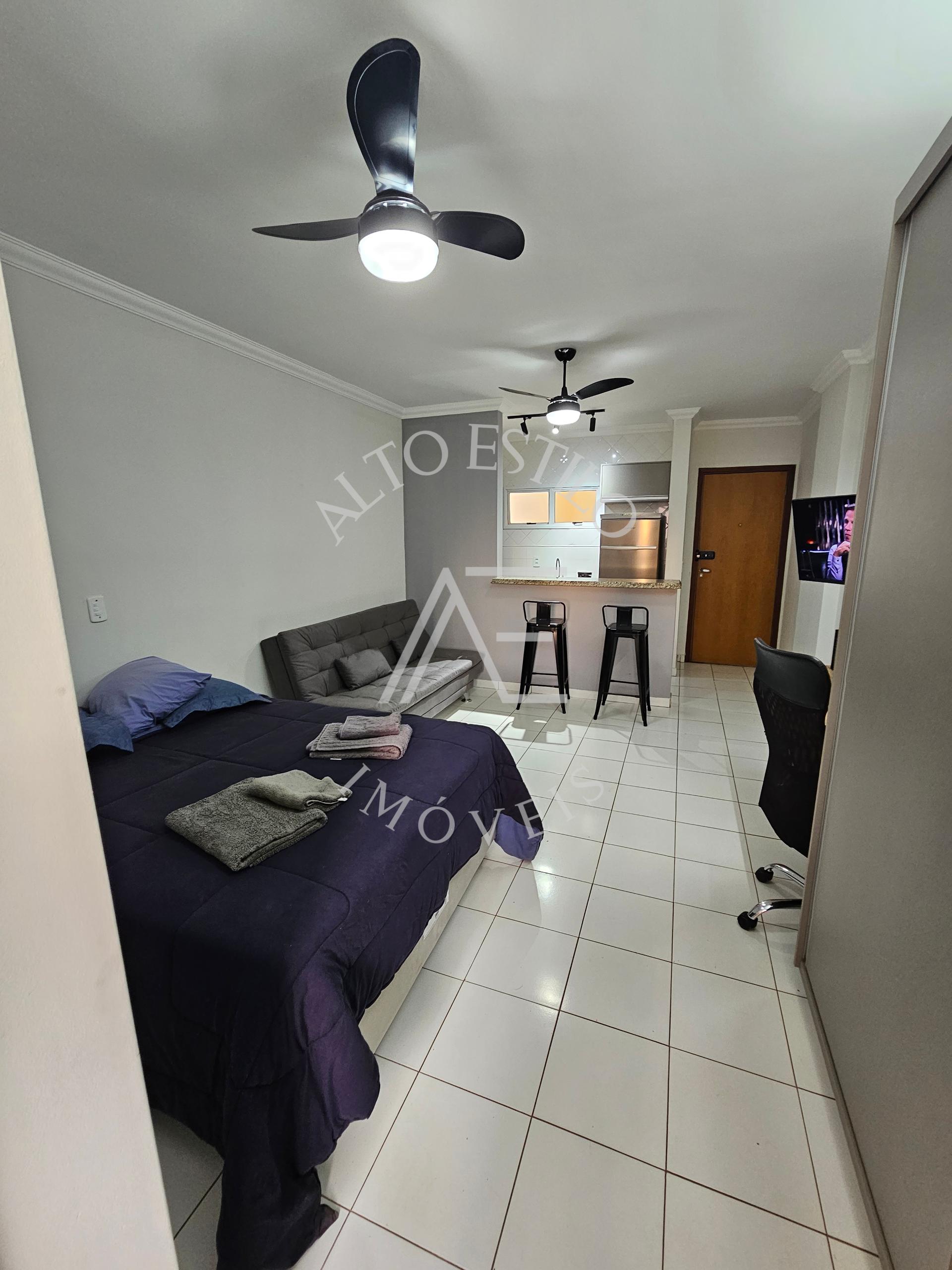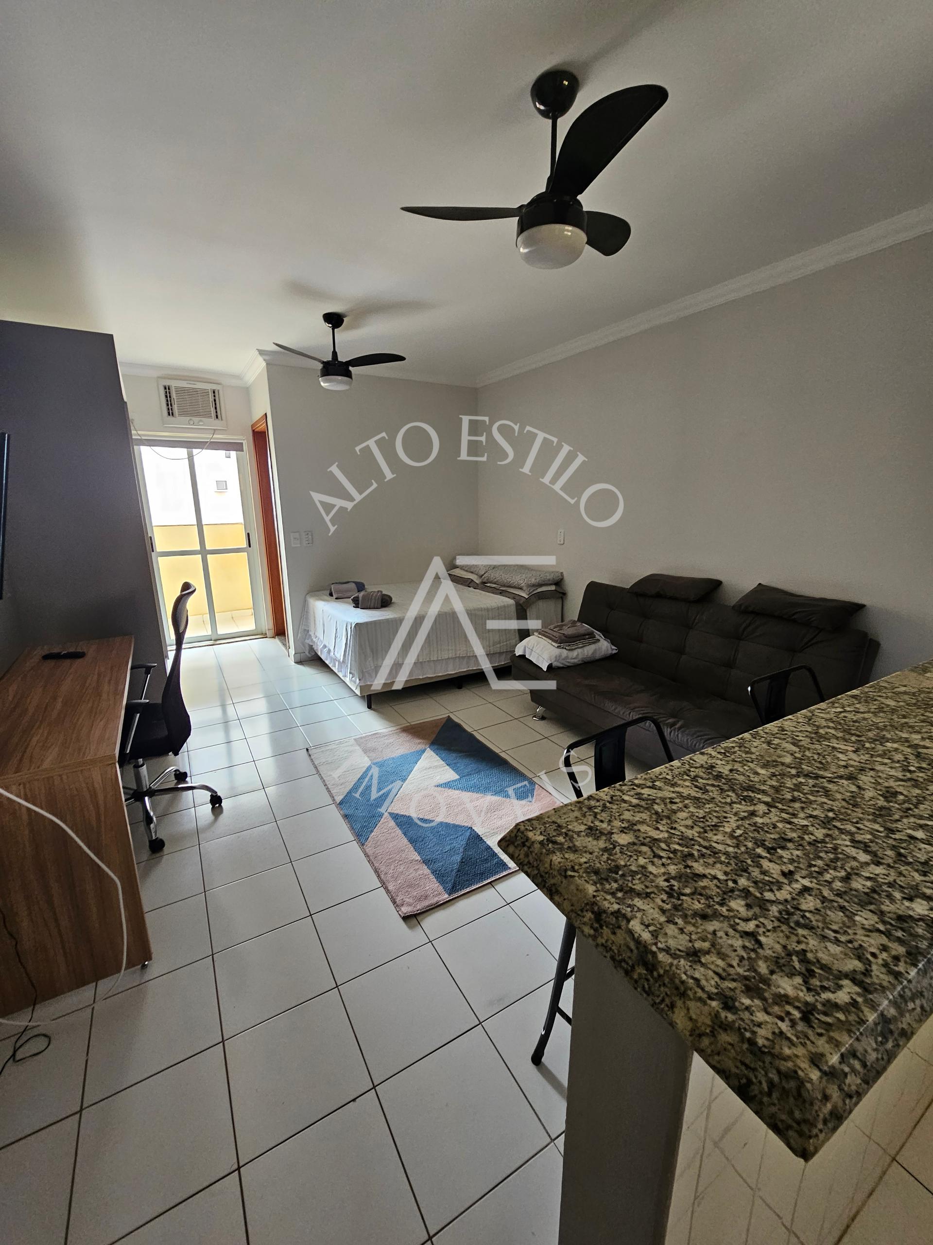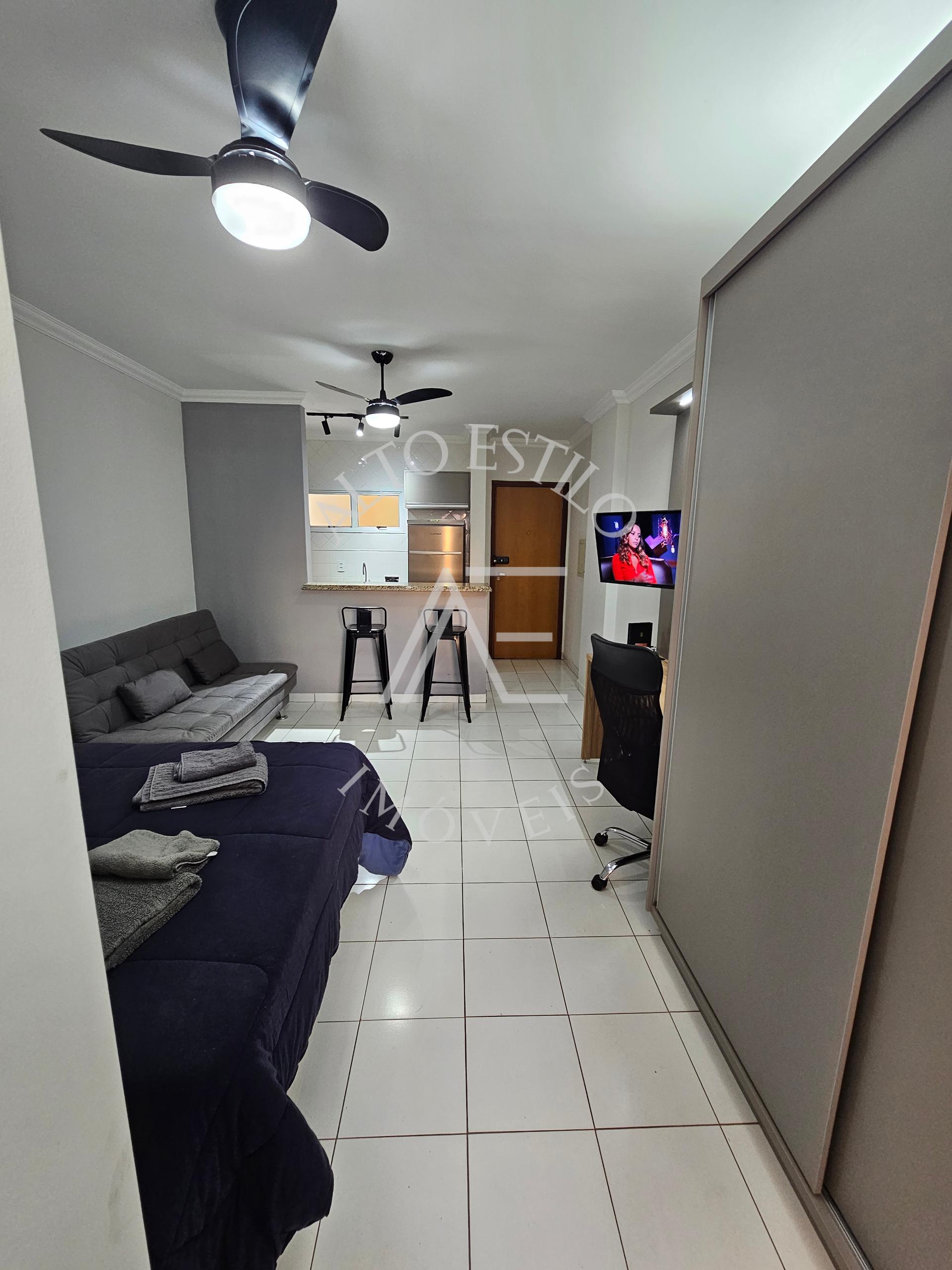 Mobiliada com TV, ar-condicionado, fogão, micro-ondas, cama e sofá